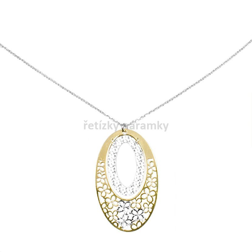 Stříbrný náhrdelník ovál s kytičkami, žlutě zlacený