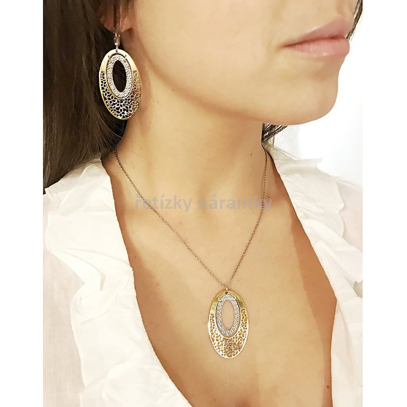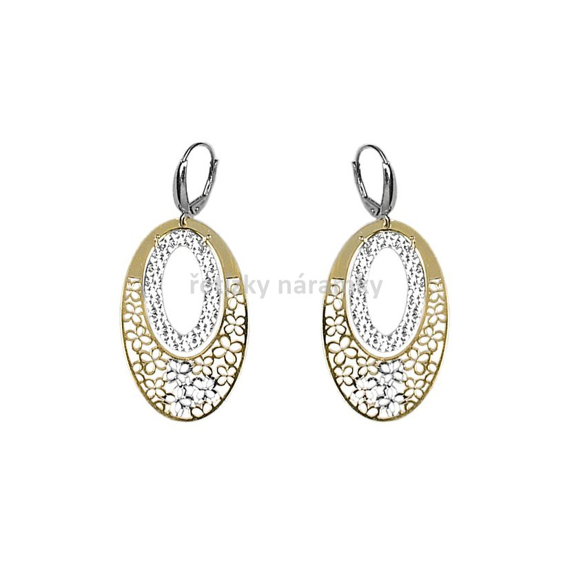 Stříbrné náušnice ovál s kytičkami, žlutě zlacené