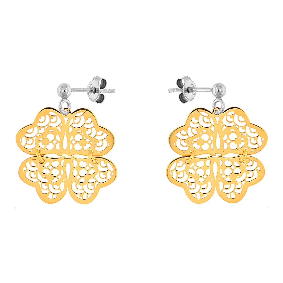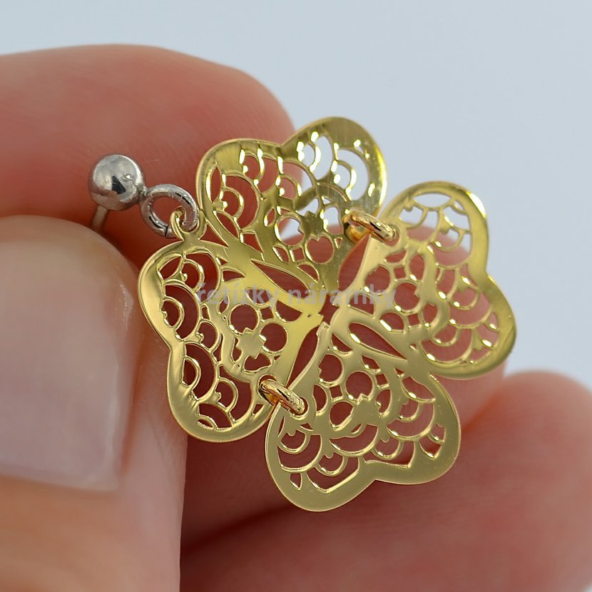 Čtyřlístek je vyroben ze dvou částí spojených kroužky, takže je efektně pohyblivý.