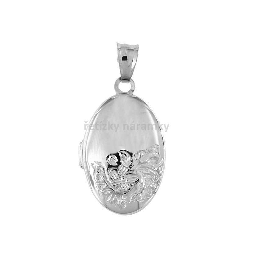 Stříbrný medailon, gravírovaný ovál 2,4cm