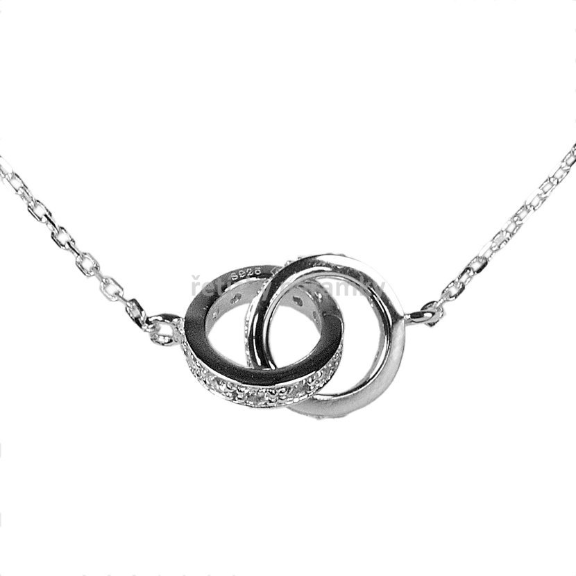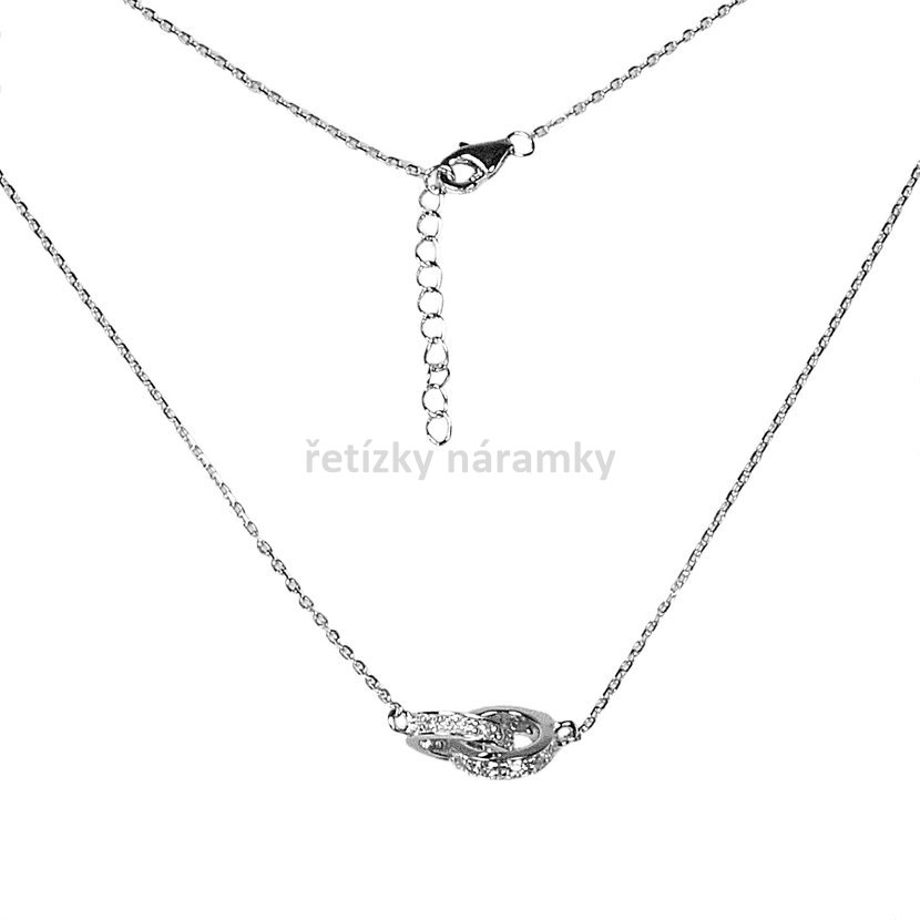 Stříbrný náhrdelník spojené kroužky se zirkony