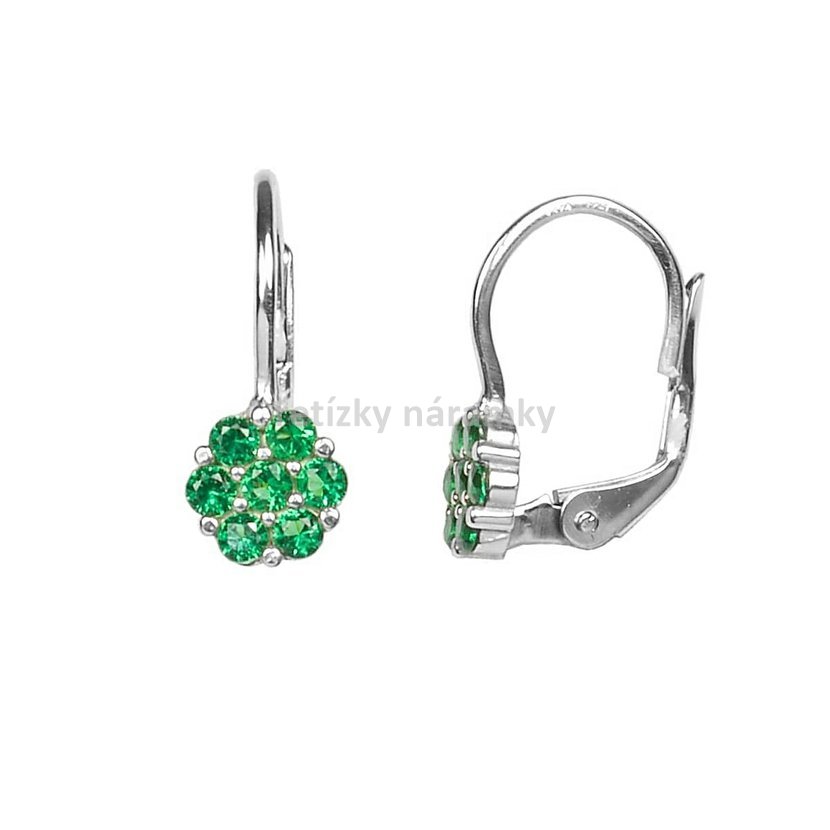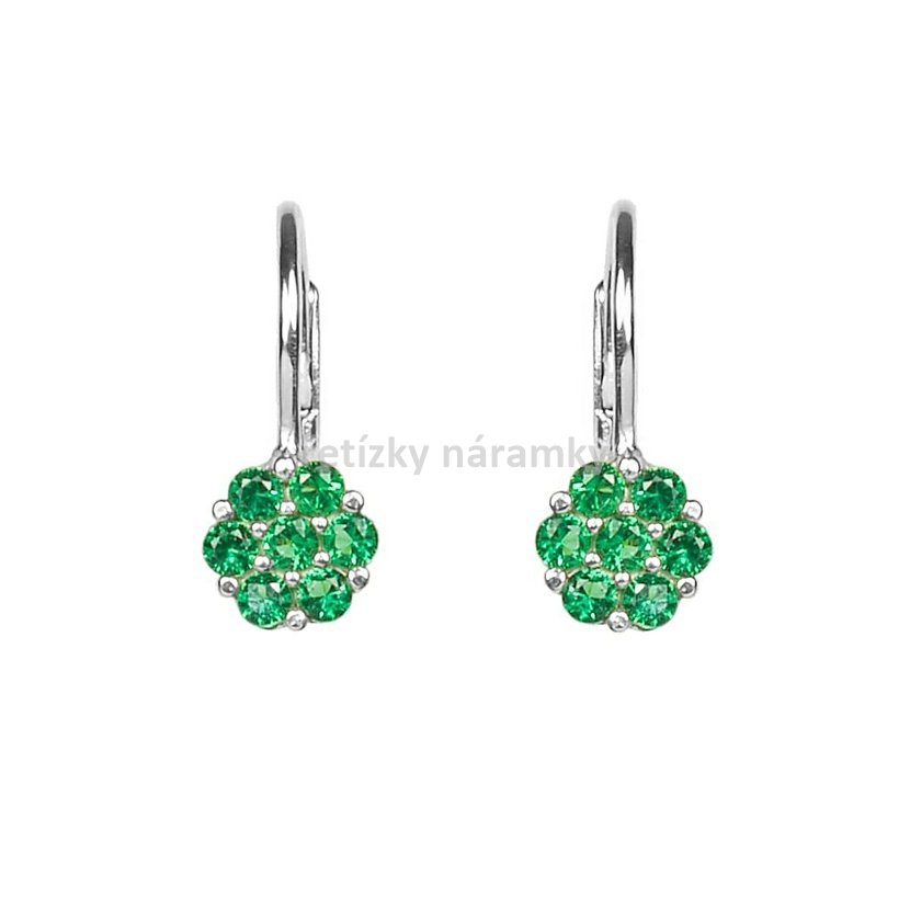 Stříbrné náušnice kytičky se zelenými zirkony na patent KE3