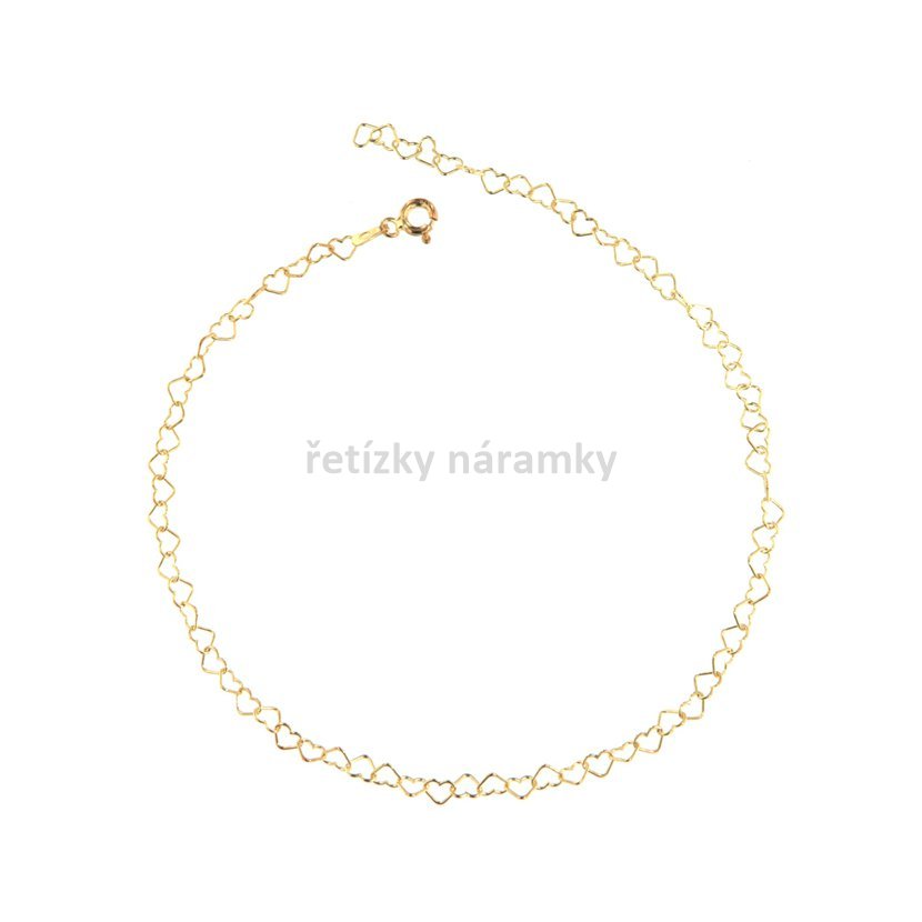 Náramek na nohu srdíčka, zlacený žlutým zlatem