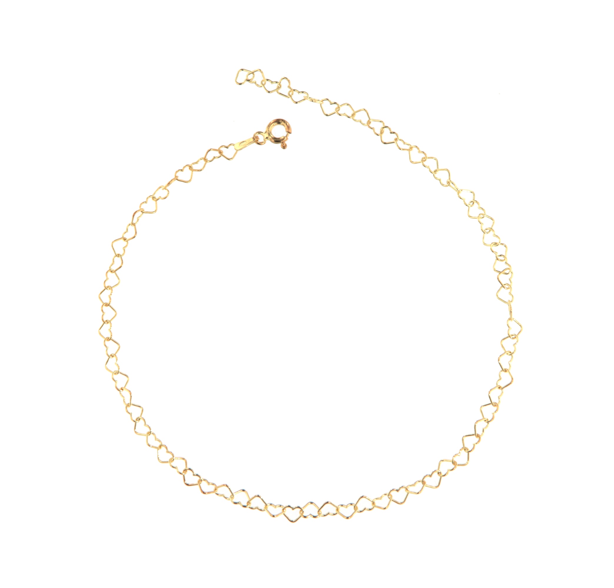 Srdíčkový náramek na nohu v délce 26cm je vyroben z dílků ve tvaru srdíček pospojovaných do sebe.